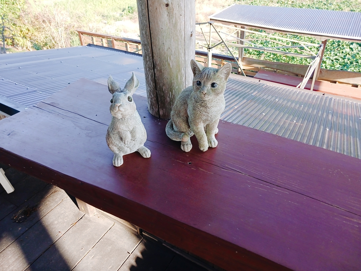モフモフの頭を快くなでさせてもらえました。相変わらず可愛すぎます!テラスに来たミーちゃんはカウンターテーブルの上に飛び乗り、黄昏ていました。